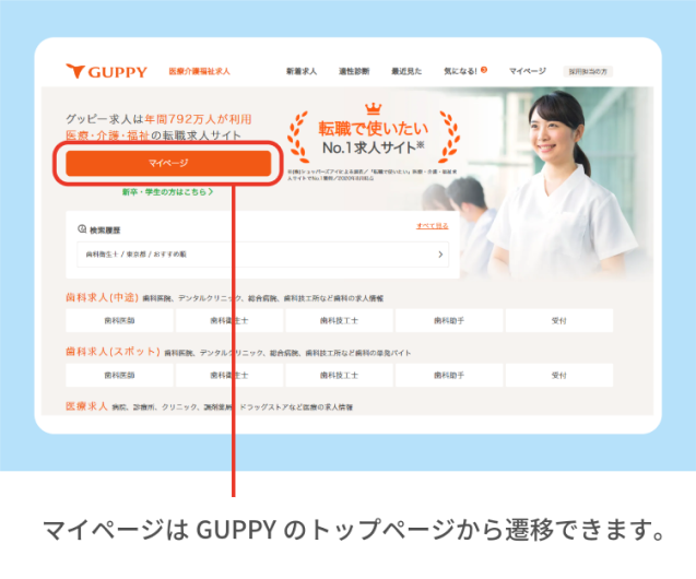 マイページは、GUPPYのTOPページから移動できます。(ログイン状態でご確認いただけます)