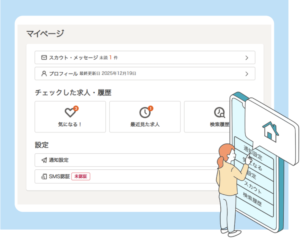 マイページは、求人サイトを「見るだけ」で終わらせないためのツールです。