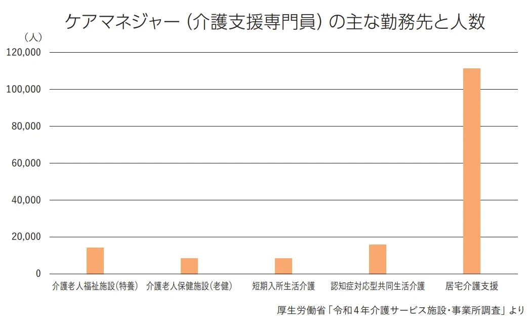 一方、施設では施設外での仕事は少なく、介護業務を兼務する場合もあります。そのほか、地域包括支援センターなどで地域のケア課題に幅広く取り組む人もいます。